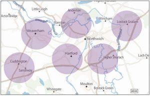 Areas covered across Northwich include - Kingsmead, Hartford, Davenham, Sandiway, Cuddington, Delamere Park, Weaverham and parts of Leftwich & Lostock Gralam. We continually review our distribution areas and have recently added in newer areas deveopments - Hill Top Grange, Hartford Grange, Weaver Park & Waters Reach & Lostock Gralam.